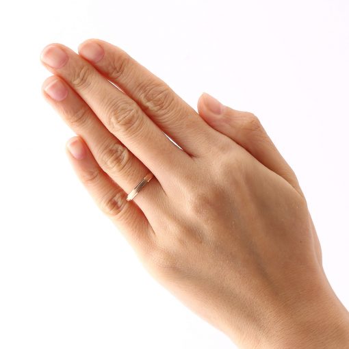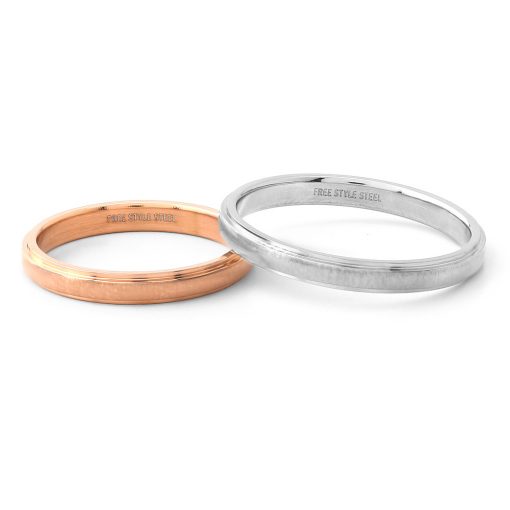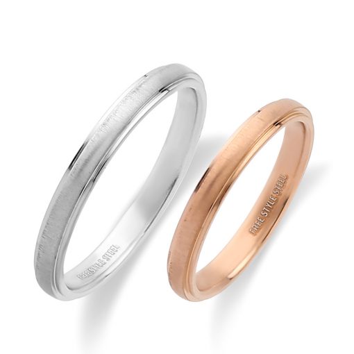 リング表面にヘアラインのマット加工を施したステンレスペアリング。メンズはステンレス素材の色を生かしたシルバーカラー、レディースにはピンクゴールドのチタンコーティングで仕上げました。医療用にも用いられる素材を使用しているので金属アレルギーの方も安心してお使い頂けます。