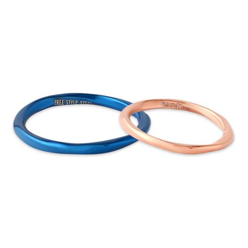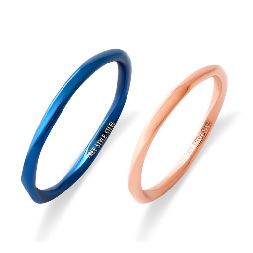 細めのシンプルなリングをツイストさせたステンレスペアリング。定番デザインなのでシーンを選ばず長くご愛用頂けます。メンズにはブルーカラー、レディースリングにはピンクゴールドのコーティングを施しました。医療用にも用いられる素材を使用しているので金属アレルギーの方も安心してお使い頂けます。