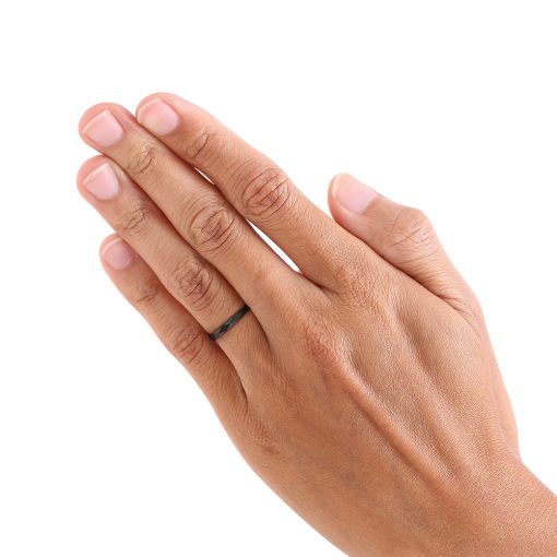 タングステンの強靭なリングにダイヤ柄のカッティングをし、永遠に失われない輝きを与えました。とても薄いボディで着け心地が良く、傷にも強い素材です。メンズはブラックコーティング、レディースはシンプルにタングステンオリジナルカラーでご用意しております。